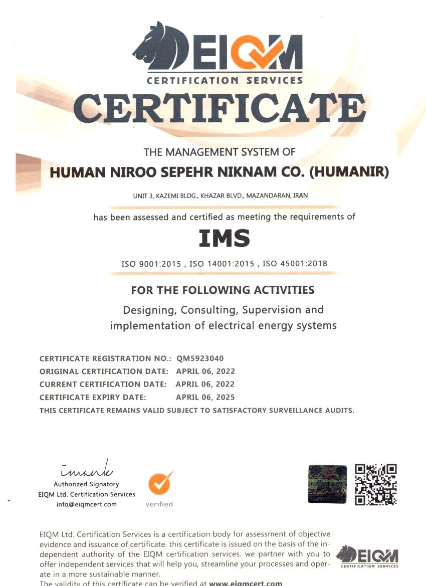 شرکت مهندسی هومان نیرو سپهر نیکنام (سهامی خاص) با نام اختصاری "هومانیر" در سال 1397 با شماره رسمی 15129  با هدف انجام پروژه های مطالعاتی، طراحی، اجرا و تامین تجهیزات در زمینه مهندسی برق، انرژی های تجدید پذیر، نفت و گاز تاسیس شد.