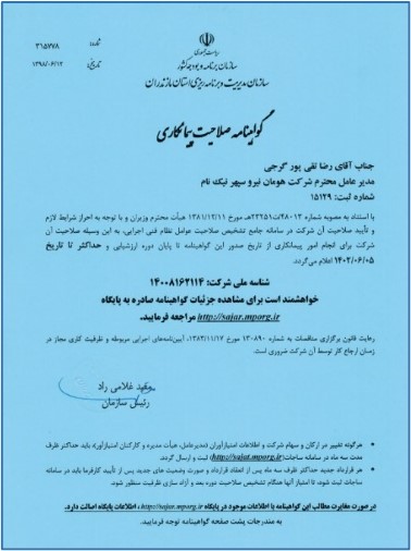 درباره ما معرفی هومانیرچشم انداز و ماموریترزومه شرکتگواهینامه هاعضویت در مجامع تخصصی کارفرمایانبیانیه استراتژیک هومانیرخط مشی سیستم مدیریت یکپارچهخط مشی کیفیت ساتبا مجوز نیروگاه های انشعابی ساتبا مجوز نیرو گاه های مگاواتی ساتبا مجوز مشاوره نیروگاهای مگاواتی ساتبا گواهینامه ها ISO 9001:2015 HSE-MS ISO 14001:2015 نمایندگی شرکت آینده سازان سیاره سبز IMS ISO-45001:2018 نمایندگی شرکت آینده سازان سیاره سبز IMS ISO-45001:2018